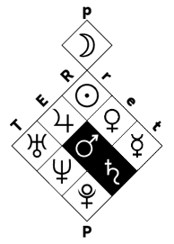 In conditionalist astrology, Mars is associated with the source level "E" and the goal level "e" of the RET. There is a redundancy of the existence level, meaning the world of facts, observable reality, and tangible phenomena.