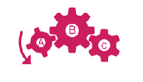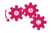 Clearly, wheel B, which follows wheel A, turns clockwise, and wheel C, which comes next, turns counterclockwise.