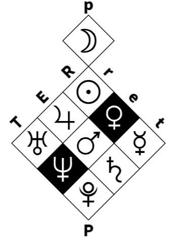 In the Objet referential, Venus' function concerns images ("R") that provoke sensation, emotion, and aesthetic experience ("e"). Neptune’s function is concerned with the way subtle and invisible realities ("T") are perceptible through our senses and emotions ("e").