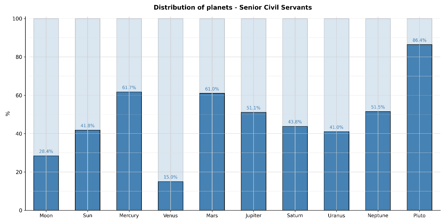 However, these skills and traits are relatively general and can be found in individuals with very different astrological charts. They may be influenced not by a single dominant planet, but by several, which would dilute their statistical impact. Indeed, the probability that one or another of these supposed planets is highlighted in a natal chart is high, making it unlikely to reveal statistically significant results within such a cohort.
