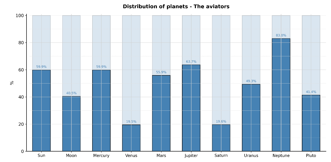 As with other population cohorts, this investigation does not reveal any statistically significant results. The qualities required for the development of talent in aviation do not appear to show any identifiable correlation with a specific planet or planetary family. Rather, these findings suggest that the conditions underlying the development of aeronautical expertise primarily depend on physical robustness, cognitive regulation, discipline, and sustained training. These competencies are progressively acquired and continuously reinforced within institutional and professional frameworks, contributing to a relative homogenization of individual profiles. Sociological and existential factors influence career orientation and should therefore be considered alongside astrological analyses.