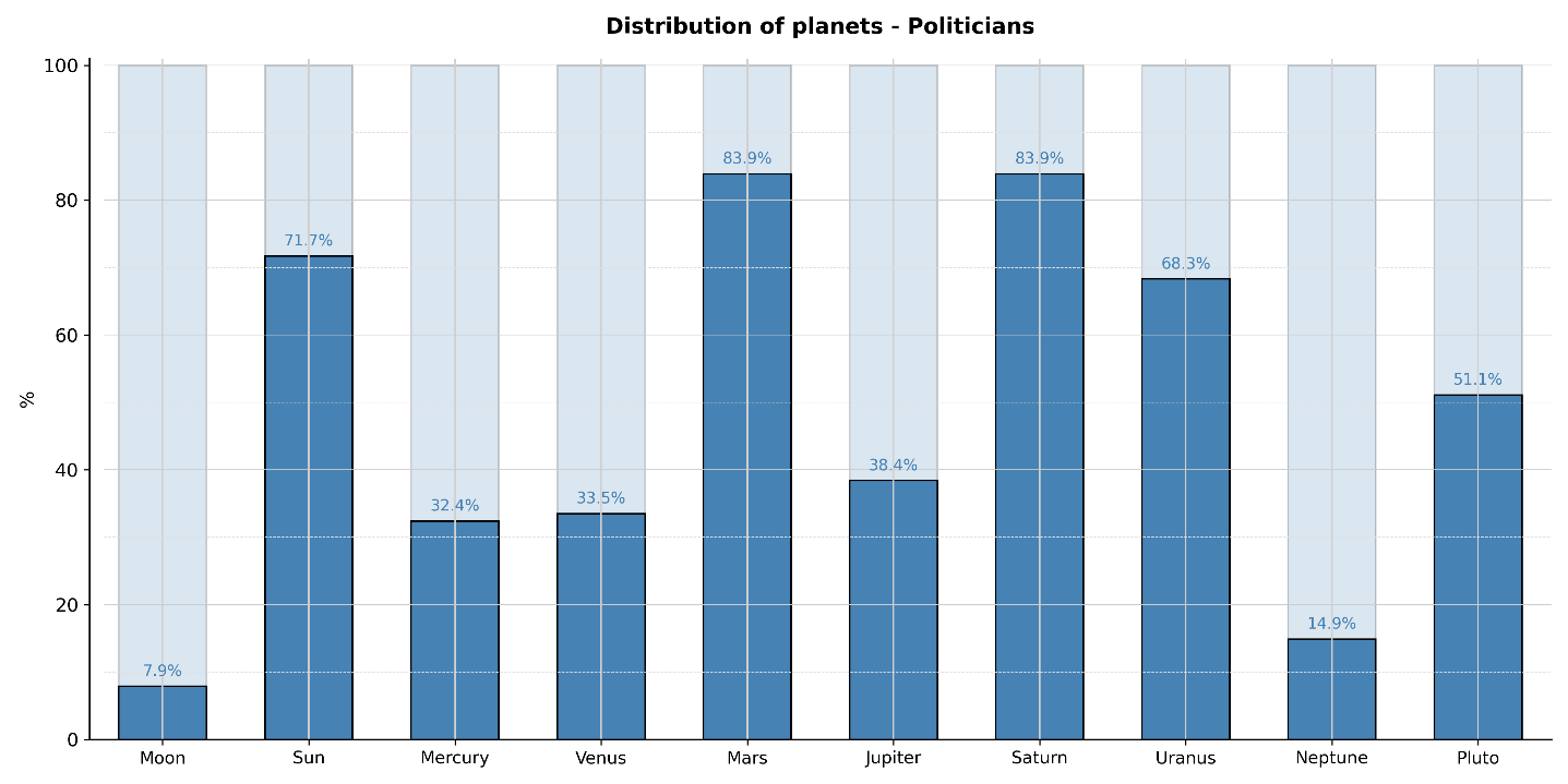 The astro-statistical results of the politicians are as follows: